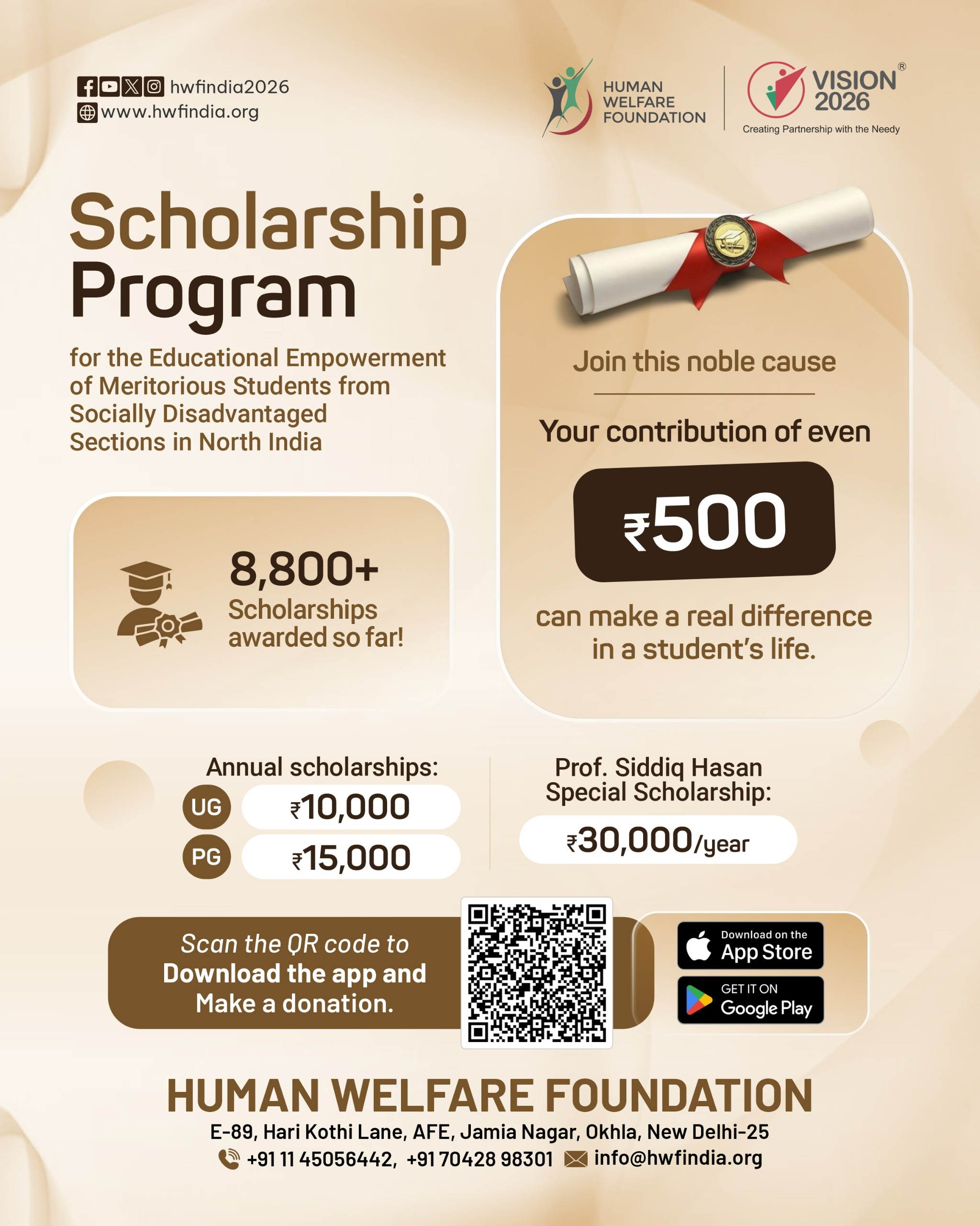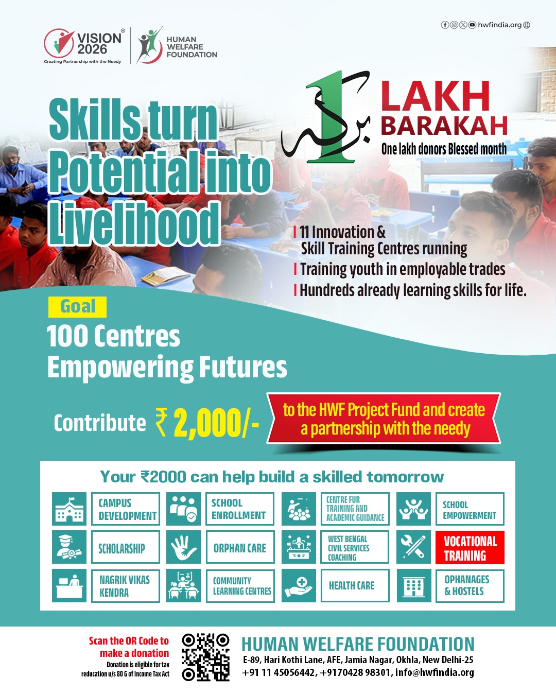 Vocational Training ProgramsHuman Welfare Foundation’s skill development and vocational training projects aims at helping underprivileged segments of the society improve their technical skills, enhance their employability level and enable them for employment and entrepreneurship. Such institutes are set up in most backward regions in the country.